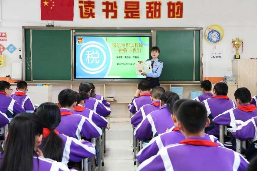 “接下来,让我们一起跟着税收去旅行,看看我们向国家缴纳的税款最终去了哪里吧!”在阜康市,当地税务部门结合开展青少年普法宣传,向阜康市第五小学赠送了《我的税收第一课》知识读本,税务干部以场景互动的形式,与六年级的学生开启充满趣味的“税收第一课”。结合税收知识读本中《税款的旅行》的故事,让孩子们知道了税收从哪里来、又到哪里去,更加深刻地理解税收“取之于民、用之于民”的道理。