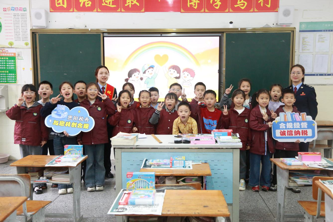 “原来我爸爸交的税,变成了我们学校新修的运动场!”“以后买东西我要提醒妈妈开发票,那是诚信纳税的‘小凭证’!”课堂上,同学们争相举手发言,童言稚语中透露出对税收“取之于民、用之于民”的朴素理解。宣讲队员还结合本地实例,讲述了恩阳大道、登科公园等背后的税收支撑,让孩子们真切感受到“税收,就在自己身边”。